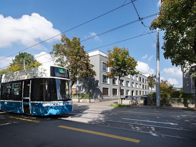 Die Lage oberhalb des Römerhofes ist – sieht man vom Geläut der Kreuzkirche und vom nahen Pausenhof ab – ruhig und sonnig. Die meisten Wohnungen besitzen einen kleinen und einen grossen Balkon (jene im Dach nur einen). Ein kleiner Vorgarten dient als Sitzplatz für die Bewohnerschaft. Die Küchen und Bäder sind schlicht und modern gestaltet. 2017 haben wir die Liegenschaft rundum erneuert. Die attraktiven Bodenbeläge und ein Altbauflair blieben dabei jedoch erhalten. Am Römerhof verkehren mehrere Tramlinien und die Dolderbahn.