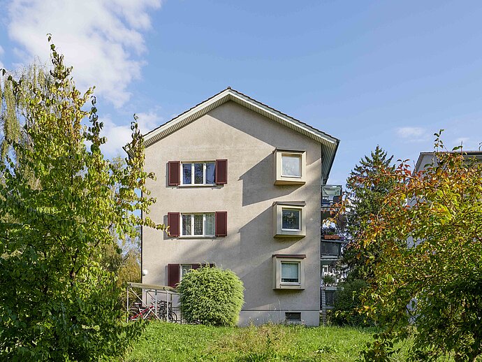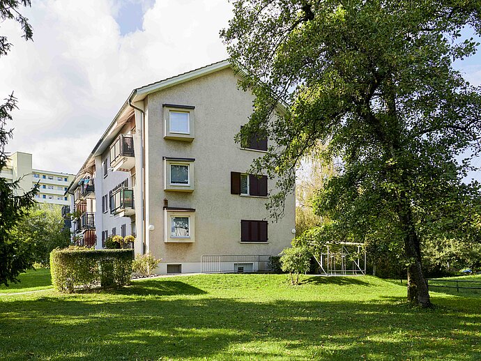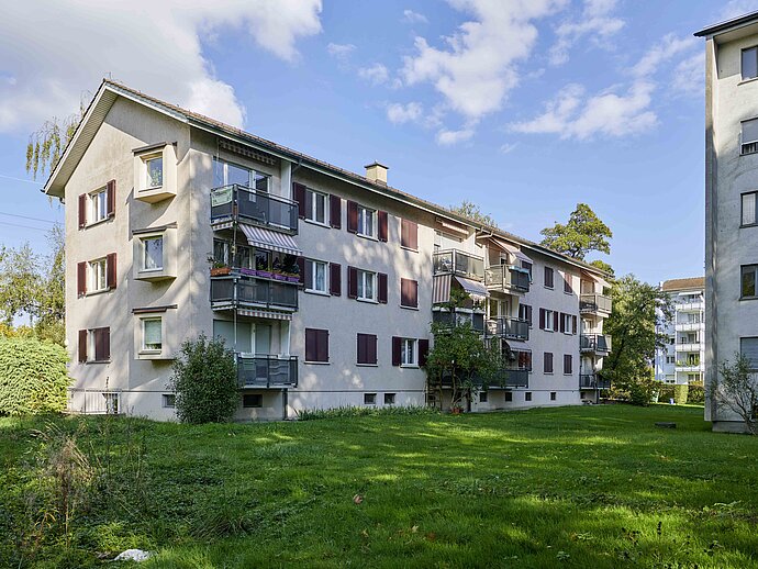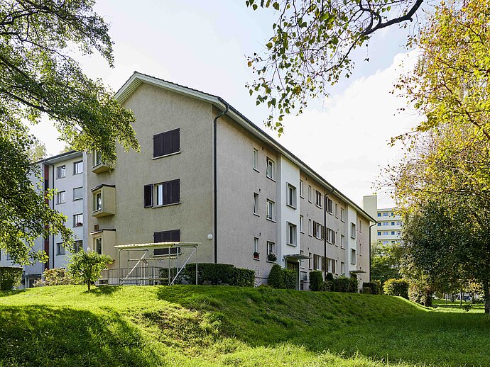Das Quartier entstand im Wesentlichen ab 1948 nach dem Vorbild einer Gartenstadt. Entsprechend prägen Wohnsiedlungen und grosszügige Freiräume das heutige Gesicht von Schwamendingen, das zur Kleinstadt herangewachsen ist. Die Nachbarschaft bietet Läden und Dienstleistungen. Der Bahnhof Stettbach sorgt für eine gute Verkehrsanbindung. Die Küchen, Bäder und Fenster stammen aus dem Jahr 1988. Bei Mieterwechseln wurden die Bodenbeläge teilweise ersetzt.