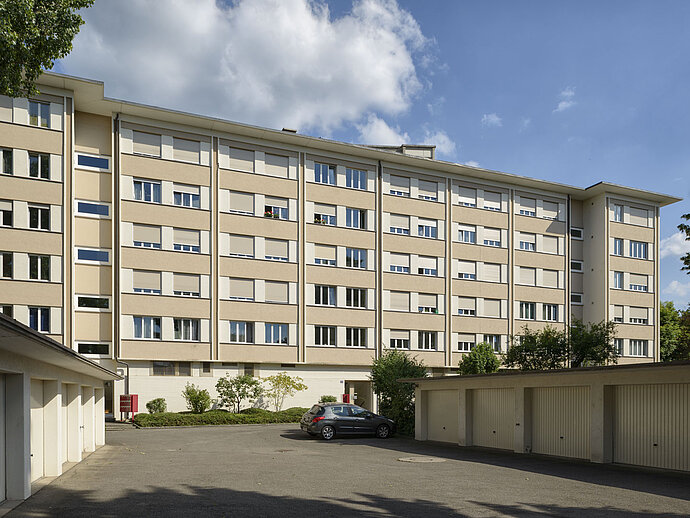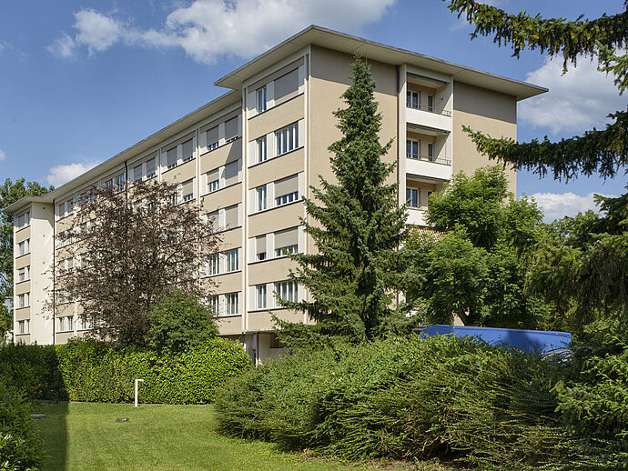Das sechsgeschossige Gebäude liegt in einem grünen Wohnquartier etwas abseits der Quartierzentren. Ein Grossverteiler und einige Fachgeschäfte befinden sich auf der gegenüberliegenden Strassenseite. Die meisten Wohnungen geniessen Morgen- und Abendsonne, alle haben einen Balkon und sind von einem Lift erschlossen. Die Liegenschaft wurde 1997 mitsamt den Bädern und Küchen erneuert.