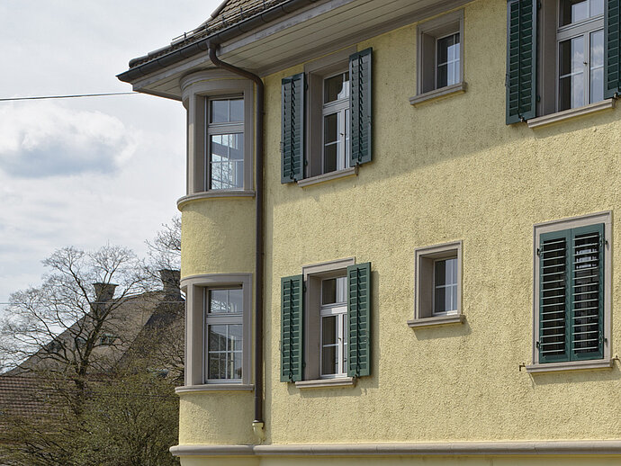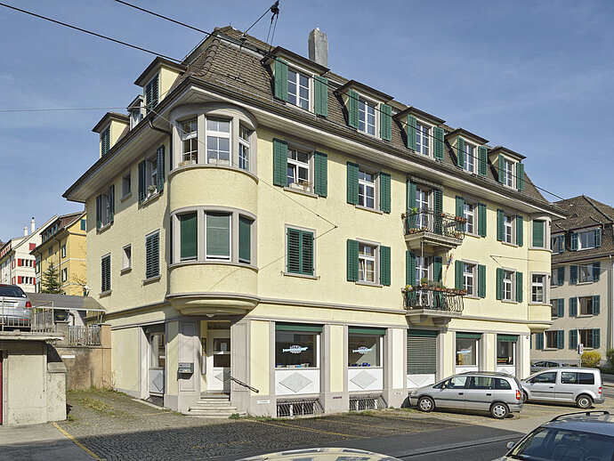 Das Haus befindet sich nicht weit vom Oberen Letten, der einen festen Platz im Zürcher Sommer hat. Ebenso nah liegen der Limmat- und der Schaffhauserplatz, wo man einkaufen kann. Der 46er-Bus fährt innerhalb weniger Minuten zum Hauptbahnhof. Auf jedem Geschoss gibt es eine 3- und eine 4-Zimmer-Wohnung. Eine geräumige Diele erschliesst alle anderen Räume. Beide Wohnungstypen verfügen über einen reizvollen Runderker und teilweise auch über einen Balkon. Das Gebäude erhielt 1995 bei der Gesamterneuerung neue Bäder und Küchen.