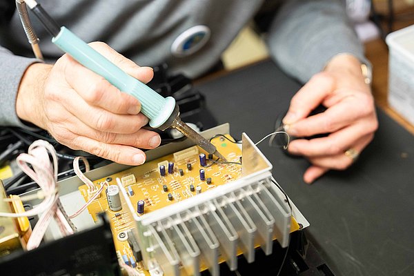Jeden Mittwochnachmittag können Quartierbewohnende aus Seebach und Oerlikon ihre kaputten Sachen gemeinsam mit dem fünfköpfigen «Reparaturia»-Team flicken. «Dank Gehdistanz zum Bahnhof Oerlikon kommen die Leute sogar von ausserhalb der Stadt zu uns», betont Rolf. «Wir arbeiten immer zu zweit, jemand von uns mit einer Besucherin oder einem Besucher.» Radios, Mixer, Toaster, Staubsauger, Kinderwagen, aber auch Spielsachen und Kaffeemaschinen: 70 bis 80 Prozent der Dinge lassen sich reparieren – manchmal auch mithilfe von YouTube, dem Fixit-Reparaturhandbuch oder ihren selbst gefertigten Reparaturprotokollen. «Wenn die Leute ihre Gegenstände selber flicken können», sagt Toni, «macht sie das total glücklich.» Und Rolf bestätigt: «Die Leute verlassen unser Repair-Café meistens mit einem Lächeln im Gesicht.» Das sei, nebst dem Tüfteln, etwas vom Schönsten an dieser Arbeit. «Reparaturia» hat inzwischen eine kleine Stammkundschaft, und einige Leute im Quartier kommen ab und an einfach auf einen Schwatz in den Reparaturkeller – ein willkommener Treffpunkt.