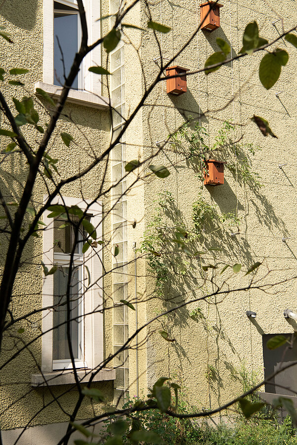 An der Edisonstrasse 12 ranken Ramblerrosen die Stahlseile an der gelben Fassade hoch. Dazwischen hängen Nistkästen für Grünfink, Stieglitz, Meisen und andere kleine Vogelarten. Auch für Fledermäuse hängt ein kleines Zuhause an der Wand. Doch es scheint noch unbewohnt zu sein. Vom ehemaligen Teerboden im Hinterhof ist nichts mehr zu sehen. Die Fläche wurde auf knapp 50 Quadratmetern entsiegelt, ringsum wachsen heimische Naschpflanzen für Vögel – und die Bewohnenden der Liegenschaft. Unter dem Motto «Die andere Ernte» ist die einst kahle Teerfläche einem Vogelparadies gewichen. Beim Gartensitzplatz können sich die Mietenden jetzt auf einen Schwatz treffen oder bei Vogelgezwitscher ein Buch lesen. Auf dem entsiegelten Kiesboden kann das Wasser nach dem Prinzip der Schwammstadt wieder ins Grundwasser fliessen statt in die Kanalisation. Auch der Blauen Heckenkirsche, der Waldrebe, der Mispel und weiteren Pflanzen steht mehr Wasser zur Verfügung. Neben den Naschpflanzen hat das Team von «Fuchs & Igel» je ein Staudenkonzept für Grünfink und Stieglitz entwickelt. Es sind die Zielarten des Gartens. «Bisher haben wir aber noch keine Brautpaare entdeckt», sagt Geschäftsführer Boris Ercegović. «Wir wollten in diesem Hinterhof einen Ersatzlebensraum schaffen, ein Trittsteinbiotop, das grössere Lebensräume miteinander vernetzt. Vögel finden in den Städten immer weniger Nistmöglichkeiten an den glatten, versiegelten Gebäudehüllen.» Dabei wäre eine Stadt wie Zürich prädestiniert dafür, ein reichhaltiges Nist- und Nahrungsangebot zu bieten. «Die Biodiversität ist im urbanen Raum nicht selten umfangreicher als da, wo viel Landwirtschaft betrieben wird.» Das Team von «Fuchs & Igel» ist nach wie vor für den Unterhalt zuständig. «Viel Arbeit macht der Vogelgarten aber nicht», sagt Boris Ercegović. Und genau das sei das Ziel gewesen.
