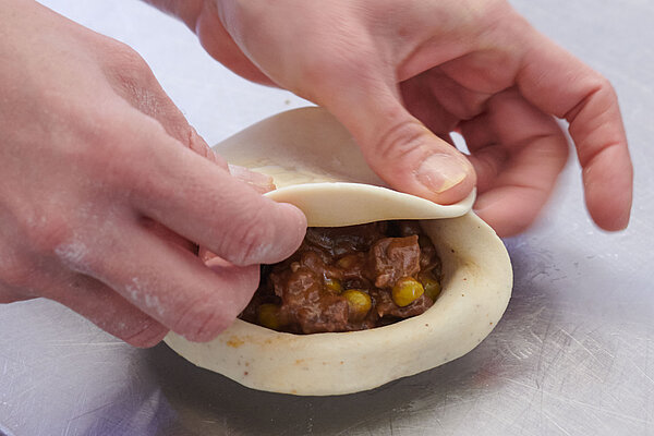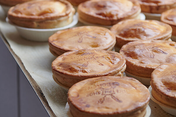 Mavrodieva hat das Take-Away-Geschäft im Mai 2023 nach einer kurzen Probezeit als Geschäftsführerin von ihren ehemaligen Arbeitgeberinnen Regula Stutz und Jacqueline Hodel übernommen, die sich langsam aus dem Geschäft zurückziehen wollten. Die beiden Zürcherinnen hatten den Pie Shop 2006 gegründet, um ein Stück britischer Tradition nach Zürich zu bringen. Erst verkauften sie ihre salzigen Pies, Gebäcke und ausgewählte englische Produkte am Schaffhauserplatz, dann kam 2010 ein Verkaufsstand in der Markthalle IM VIADUKT dazu, und mit dem wachsenden Betrieb wurde die Produktion 2015 an den Bahnhof Wipkingen verlegt. Heute werden hier von Montag bis Freitag täglich 250 bis 300 Pies hergestellt. Nur das Portionieren und Auswallen des Teigs übernimmt eine Maschine, erklärt Mavrodieva. Sonst wird alles von Hand zubereitet. So sehen denn auch alle Pies, die Mavrodieva ins Viadukt bringt, etwas anders aus. Und trotz der verschiedenen Formen: Nur der mit hausgemachtem Kartoffelstock überbackene Shepherd’s Pie mit Lammfüllung verrät, was drin ist. Ansonsten zeigt ein Stempel auf dem Teig an, ob Chili, Beef, Vegi oder Chicken in der knusprigen Hülle steckt. Eine vegane Pasty – so heisst die Variante, die wie eine Empanada geformt ist – hat Mavrodieva im Sommer mit ihrem achtköpfigen Team auf Wunsch der Kundschaft neu kreiert. Ansonsten hat sie das Sortiment bisher kaum verändert. «Ich bin kein Fan davon, Bewährtes einfach so zu ändern», sagt sie. Vielmehr will sie die Tradition des englischen Comfort Food, der zufrieden macht, fortführen.