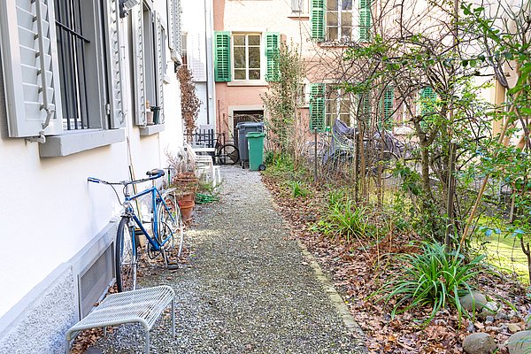 Mit neu gekiesten Wegen, einheimischen Schattenpflanzen, dornigen Gehölzen und einer kletternden Waldrebe entsteht ein Lebensraum, der Insekten und Vögeln Nahrung und Schutz bietet – und zugleich den Bewohnerinnen und Bewohnern mehr Aufenthaltsqualität schenkt. Noch ist das Grün jung und muss wachsen, doch schon jetzt lässt sich erahnen, wie der Hinterhof Stück für Stück lebendig wird.