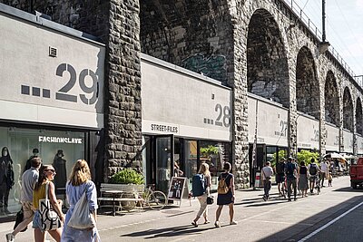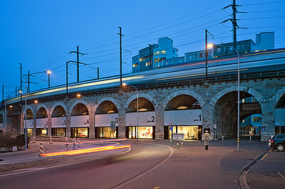 Das bisher grösste und ehrgeizigste Bauvorhaben der Stiftung PWG wird eröffnet: die Umnutzung des Aussersihler Viadukts im ehemaligen Industriequartier Kreis 5. Unter dem Label «IM VIADUKT» vermietet die Stiftung PWG seit 2010 im denkmalgeschützten Bahnviadukt aus der Gründerzeit Läden, Ateliers und Gastronomielokale, darunter die erste Markthalle der Stadt Zürich.