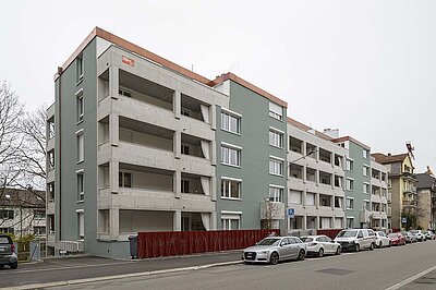 Ersatzneubau Rautihalde 15, 19: Ein erneuerungsbedürftiger Bau aus dem Jahr 1959 wird durch einen Ersatzneubau mit rund 40 % mehr Wohnfläche ersetzt. Der Neubau von Fiederling Habersang Architekten mit 33 kompakten Wohnungen ist 2020 bezugsbereit und wird bei der Auszeichnung für gute Bauten 2016–2020 mit einer Anerkennung gewürdigt.