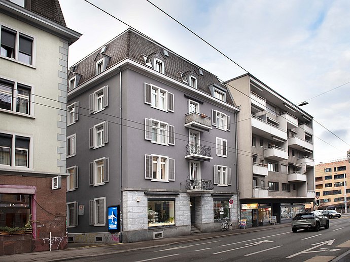 Hier kommt man oft vorbei: Dieses einseitig angebaute Wohn- und Geschäftshaus aus dem Jahr 1893 liegt zentral in Wiedikon, nur wenige Gehminuten von der Kalkbreite entfernt. Die Liegenschaft umfasst 8 Wohnungen und 4 Gewerbeeinheiten. 1989 wurde das Gebäude im Rahmen einer Gesamtsanierung vollständig entkernt und mit einem Lift ausgestattet, der den Zugang zu allen Stockwerken erleichtert.